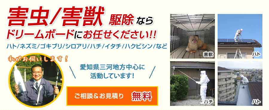 害獣駆除、ネズミ駆除、ハト飛来防止、シロアリ駆除の情報を更新いたしました。